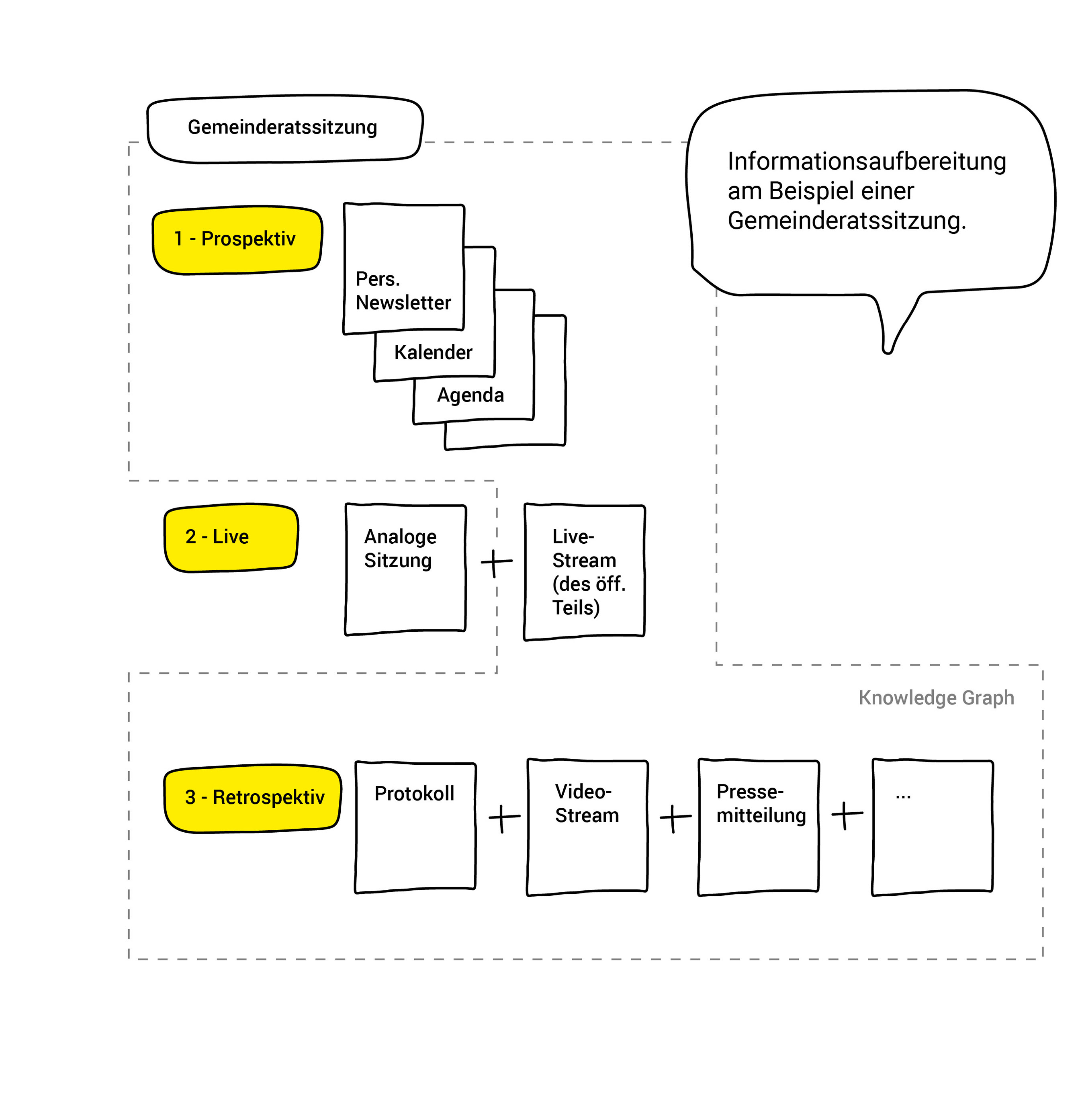 Über das hier (beispielhaft an der Gemeinderatssitzung) skizzierte optimierte Informationsmanagement kann mit wenigen und vor allem mit bereits vorhandenen Mitteln (Knowledge Graph) ein echter Mehrwert für die Bürger*innen und zugleich eine Effizienzsteigerung in der Verwaltung erreicht werden.