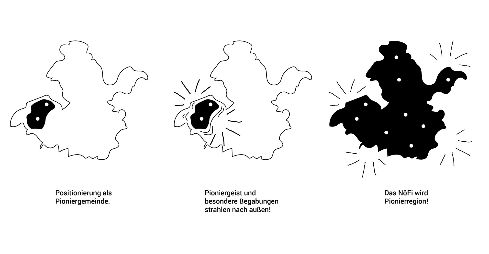 Um all diese neuen Konzepte anzugehen - beispielsweise ein neues Mobilitätsangebot - entwickeln sich die neun NöFi-Gemeinden zu „Pioniergemeinden“ in unterschiedlichen Bereichen. Durch die individuelle Schwerpunktsetzung auf bestimmte Themengebiete ist es leichter, Dinge auszuprobieren, Wissen zu sammeln und ein konkretes Ziel zu erreichen.