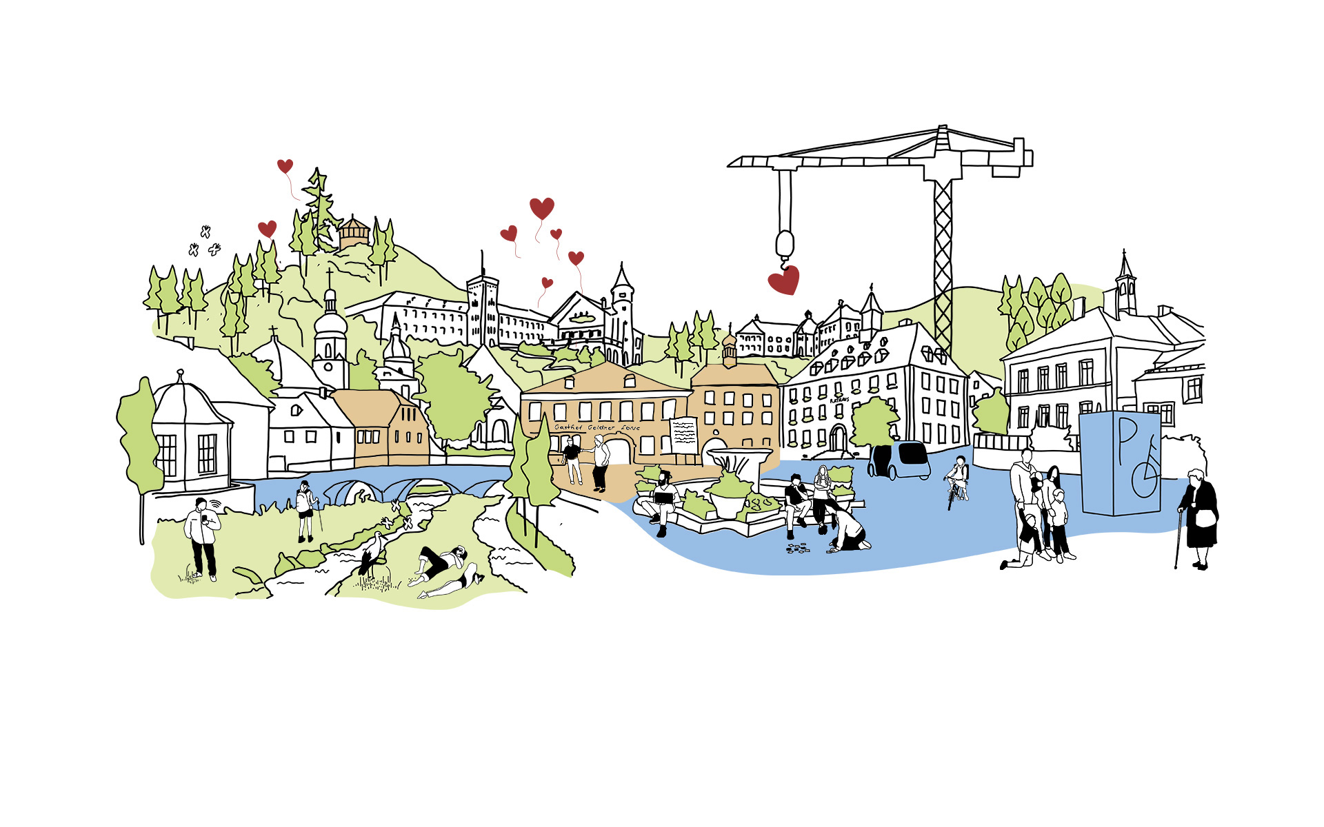 Paar Seniorin Schulkind Familie Urlauberin Urlauber Lanwirt Unternehmer Planer Turm Oberkotzau Gasthof Goldner Löwe Kirchenlamitz Schwarzenbach Wirtschaften-rechts Berge-links Berge-oben Bach Berge-rechts Berge-oben-2 Baum Brücke-links Brücke-mitte Brücke-rechts Platz Platz-rechts