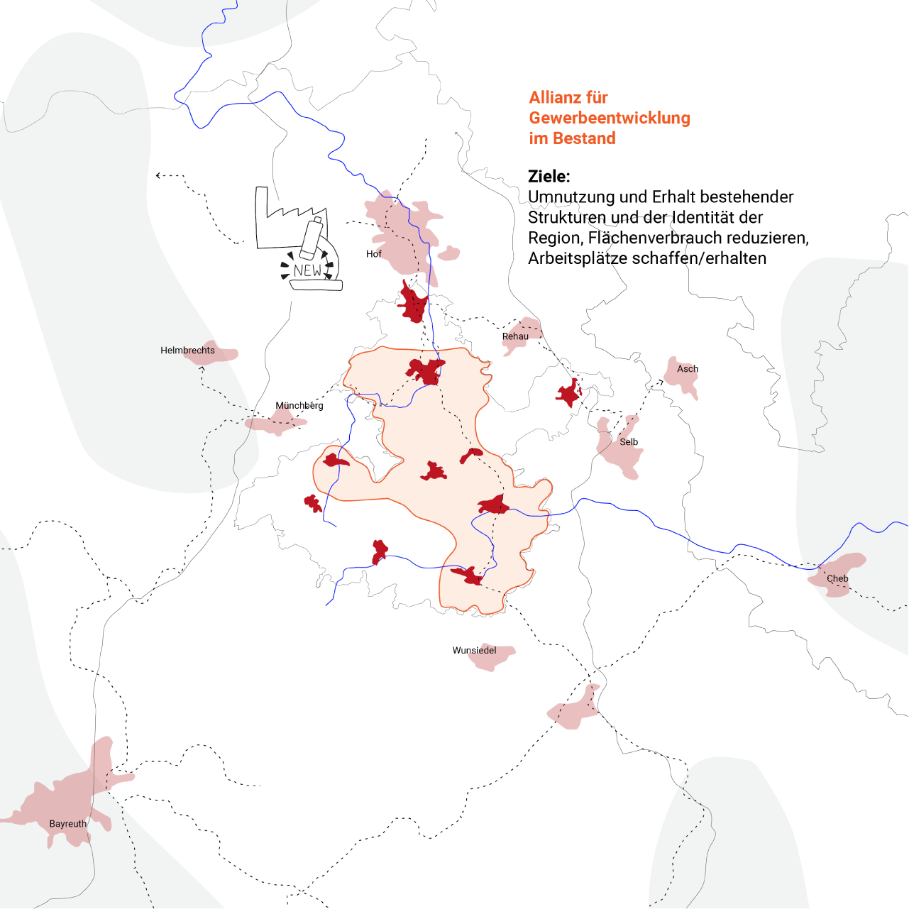 Die Pioniergemeinden der Allianz für Gewerbeentwicklung im Bestand sind prioritär: Schwarzenbach an der Saale, Kirchenlamitz, Marktleuthen, Röslau, Sparneck.