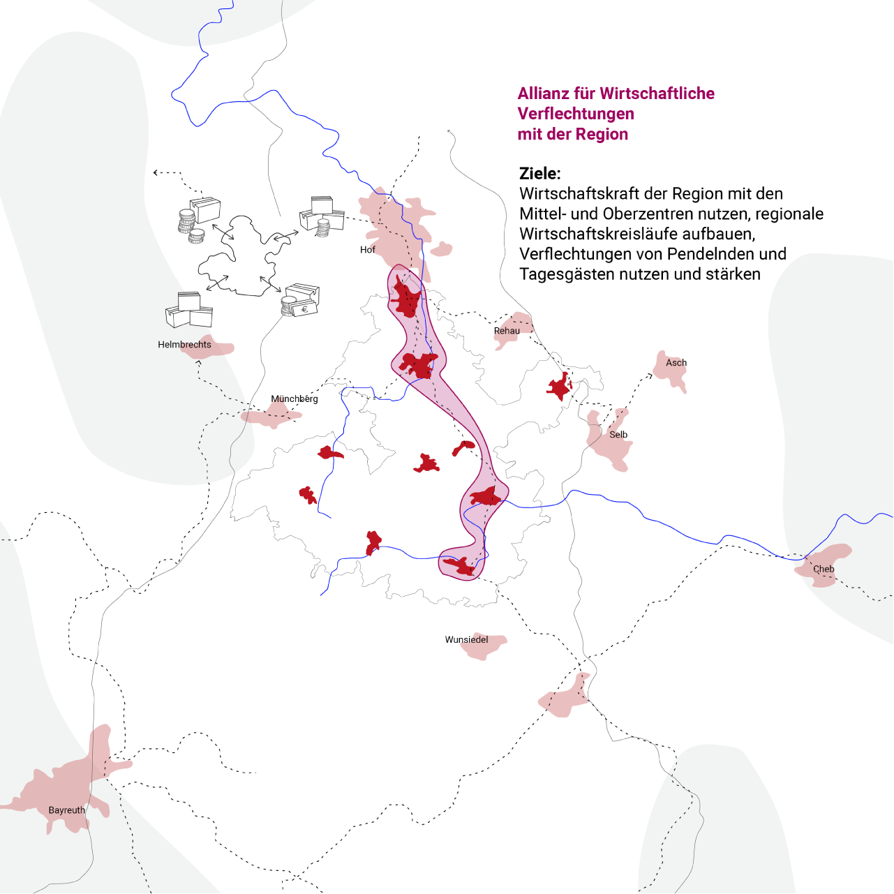 Die Pioniergemeinden der Allianz für wirtschaftliche Verflechtungen mit der Region sind prioritär: Oberkotzau, Schwarzenbach an der Saale, Röslau, Marktleuthen.