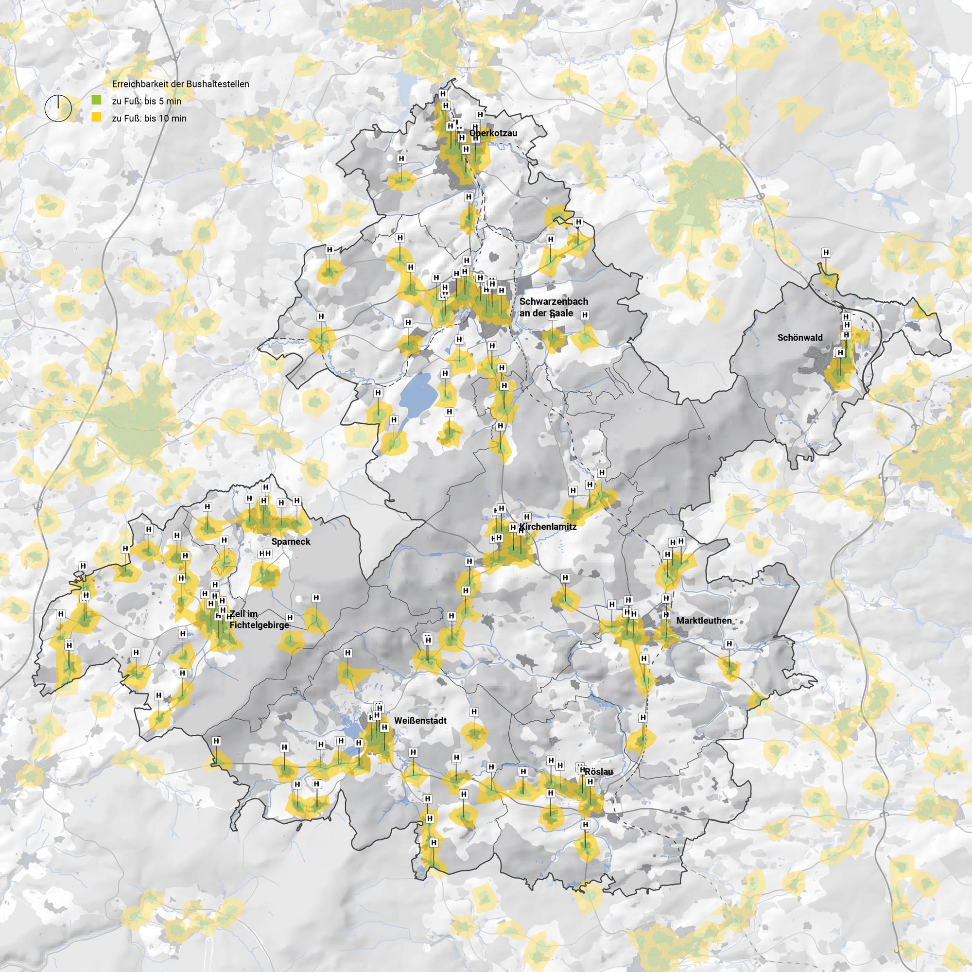 Bushaltestellen im NöFi mit fußläufiger Erreichbarkeit, Quelle berchtoldkrass, unter Verwendung folgender Daten: