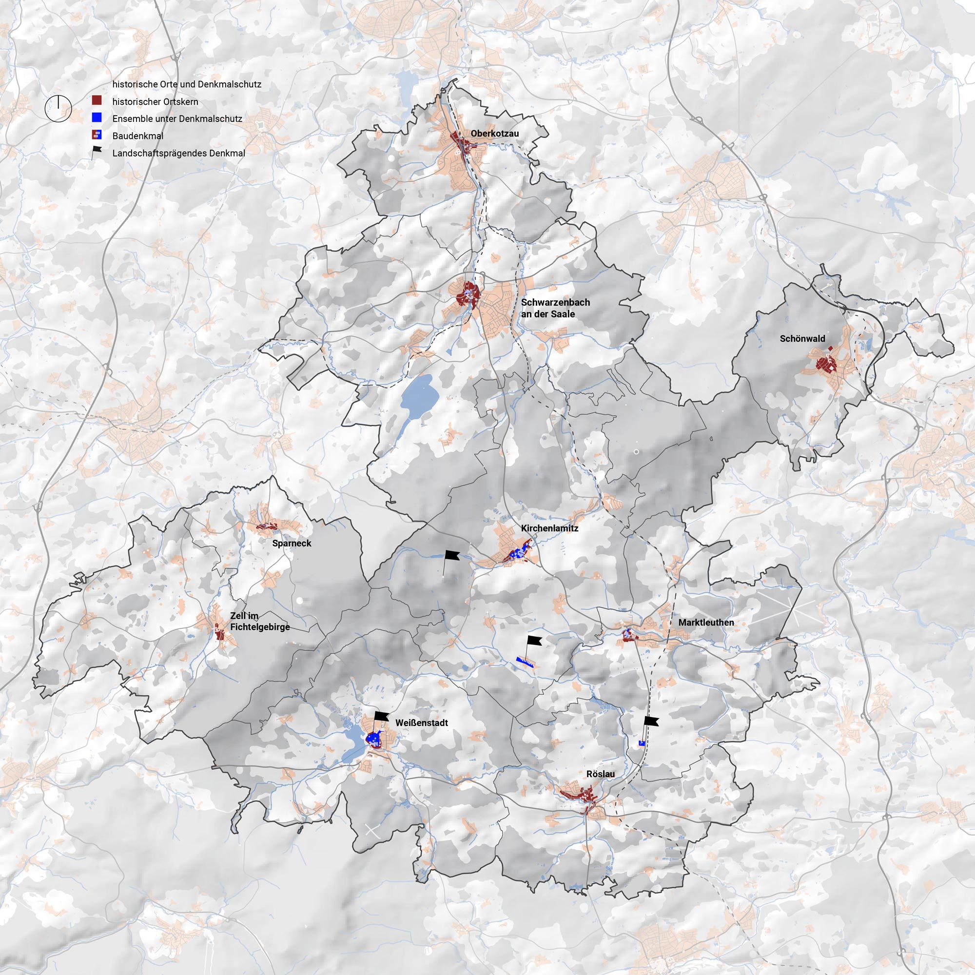 Neben den denkmalgeschützen Gebäuden in den Hauptorten sind auch Ortsteile auf besondere Weise geschützt. Das Angerdorf Neudes und das Zeilendorf Reicholdsgrün prägen die Landschaft mit ihrer für die Region typischen Siedlungsanordnung und unterliegen dem Esembleschutz und sind als Landschaftsprägendes Denkmal festgelegt.